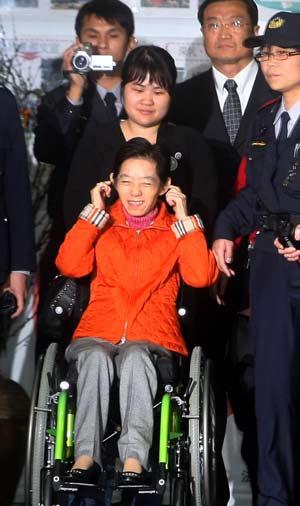 組圖:吳淑珍出庭看似精神好 招手堵耳法警跟拍