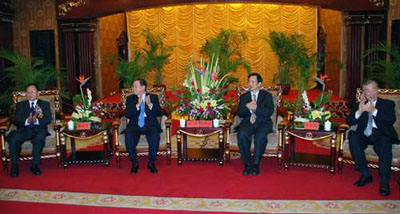 國民黨中常委蔣孝嚴(yán)亦題寫賀詞:“功績卓著”,贊揚泉州臺商協(xié)會十二年來所取得的成績。而全國臺企聯(lián)會長張漢文更親率全國各地百余臺企會長及代表蒞會祝賀,并在慶典上號召廣大臺商朋友明年3月回臺灣投上自己莊嚴(yán)的一票。