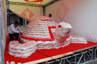 泉州天后宮文物保護(hù)管理處副主任何振良說,繼去年澎湖“乞龜”祈福的民俗表演首次在泉州天后宮展現(xiàn)后,今年元宵期間澎湖“乞龜”將再次參加泉州天后宮的鬧元宵活動。去年的那只“米龜”,由1200袋平安米做成,重達(dá)6000公斤,今年的這只“米龜”更大,將由2000袋平安米制作而成,重達(dá)1萬公斤。正月初十左右,來自澎湖縣的“米龜”制作師傅將到達(dá)泉州,開始制作“米龜”,正月十三左右制作完成。2月22日(正月十六)上午,第七屆泉州“海絲”文化節(jié)組委會將在泉州天后宮廣場舉行“泉州·澎湖乞龜民俗文化活動”揭彩儀式。