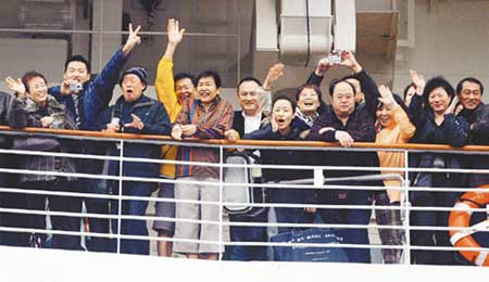12日下午,近700名大陸游客搭乘“海洋迎風(fēng)號”國際游輪駛離高雄,結(jié)束了為期兩天的臺灣觀光之旅。由于游客人數(shù)眾多,它也被稱為史上最大規(guī)模的大陸觀光團。與臺灣當(dāng)局如臨大敵、處處設(shè)限不同,島內(nèi)媒體和商界均異常興奮,稱這是“春天來臺的第一只燕子”,呼吁當(dāng)局盡快取消對大陸游客的限制。陳水扁11日趕緊邀功稱,這個大陸團是他在春節(jié)前特案批準(zhǔn)的,意圖給民進(jìn)黨在“大選”中加分。