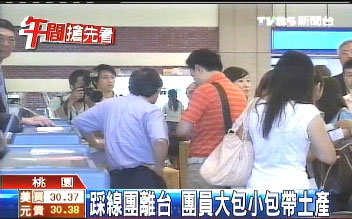中新網(wǎng)6月26日電 據(jù)臺灣TVBS報道,大陸赴臺游踩線團走過臺灣22個縣市,結(jié)束11天10夜的行程后,今天上午搭機離開臺灣,對臺灣旅游景點贊不絕口,帶了不少特產(chǎn)回去跟親友分享。