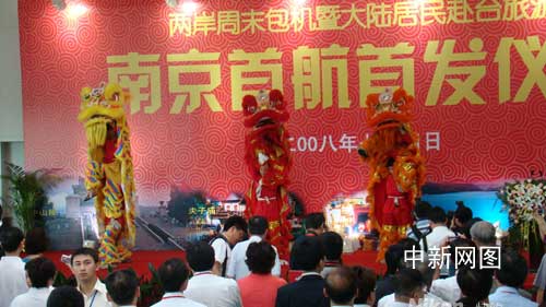 海協(xié)會會長陳云林、國臺辦常務(wù)副主任鄭立中、江蘇省長羅志軍、中共江蘇省委副書記王國生、中共南京市委書記朱善璐以及有關(guān)部門官員,江蘇省市高層、民航、旅游、口岸等方面的負責人出席儀式,加上三十名乘坐首次航班的乘客代表、二十名臺商代表、東航機組人員、旅游界人士和其它方面代表近三百人見證兩岸歷史性時刻。
