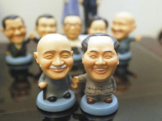 據(jù)臺灣《聯(lián)合報》報道,黨史館八月開始推出兩岸人物公仔,還包括蔣宋美齡、蔣經(jīng)國等,下個月孫中山誕辰,將推出孫中山公仔。