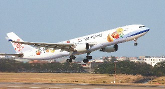 華航今天特別派出水果彩繪機執(zhí)行首航任務(wù),總經(jīng)理孫洪祥也搭機隨行,并親自在機上廣播。旅客看到色彩鮮艷的彩繪機,都忍不住拿出相機拍照。包機的旅客共有286人,參加旅行團的曾小姐花了1萬多元報名上蘇杭五天四夜超值旅游。她說,搭包機能省不少時間。還有彰化鄉(xiāng)親邀集了11人組成首航旅行團。負責帶隊的導(dǎo)游汪先生說,自行規(guī)劃行程,團費約在新臺幣3萬元左右,但吃住皆是五星級。