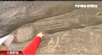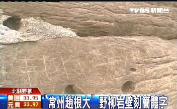 據(jù)臺(tái)灣TVBS報(bào)道,27日當(dāng)天有人在野柳地質(zhì)公園看到大批陸客,隨后就在陸橋旁的巖壁發(fā)現(xiàn)被刻上簡(jiǎn)體字樣“中國(guó)常州趙根大”,還有一個(gè)常州同鄉(xiāng)“盧建中”也來(lái)插花,又聽(tīng)到園區(qū)廣播“來(lái)自常州的旅客,請(qǐng)盡速集合”,直覺(jué)“趙根大”真有其人。地質(zhì)公園經(jīng)營(yíng)業(yè)者湯錦惠無(wú)奈地說(shuō),要麻煩導(dǎo)游倡導(dǎo)不要破壞景觀(guān)。