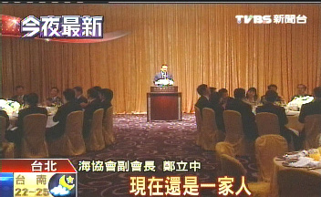 鄭立中晚間也再次談起晚宴提到的“冬季到臺北來看雨”這首歌,可惜他不會唱了。不過當(dāng)晚的氣氛讓他想唱首歌,歌名就叫“我們都是一家人”,唱完之后他還謝謝大家“在精神上付出的損失”。