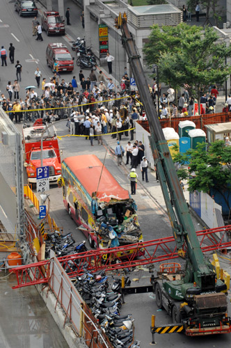 事發(fā)后,臺(tái)北市長(zhǎng)郝龍斌已親臨現(xiàn)場(chǎng)關(guān)切,負(fù)責(zé)接待的旅行社主管也都趕赴意外現(xiàn)場(chǎng)及醫(yī)院。