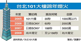 另外,從2004年一○一大樓首次施放跨火煙火至今,公部門并未補助任何經費,股東們也有意見,都是一○一大樓無法繼續(xù)施放跨年煙火的原因。