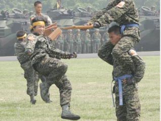 據(jù)臺(tái)灣東森新聞報(bào)道,這批軍方稱為陸戰(zhàn)隊(duì)莒拳隊(duì)成立40年來(lái)首批的女中豪杰,在海軍陸戰(zhàn)隊(duì)10月的成軍60周年隊(duì)?wèi)c活動(dòng)中,已經(jīng)在高雄左營(yíng)忠誠(chéng)營(yíng)區(qū)亮相。臺(tái)軍方指出,她們的跆拳道段數(shù),都是黑帶(一段)以上,再加上陸戰(zhàn)隊(duì)的魔鬼訓(xùn)練,如果沒有特別提醒她們是女性隊(duì)員,或是綁上黃絲帶作為辨識(shí),相信沒有人可以分辨出她們的性別。