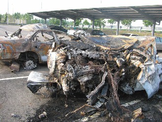 火勢(shì)順利撲滅后,發(fā)現(xiàn)兩部車上的駕駛及乘客均被燒成焦黑,已無生命跡象。由于辨識(shí)困難,目前仍未確認(rèn)死者身份,警方將進(jìn)行較精確的比對(duì)工作。目前正深入調(diào)查車禍詳細(xì)原因及死者身份。