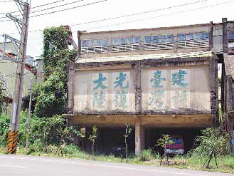 在苗栗縣三灣往南莊風(fēng)景區(qū)路上,有棟廢棄建物墻上仍保留“建設(shè)臺(tái)灣,光復(fù)大陸”的斗大標(biāo)語(yǔ),字跡斑駁,卻引人注目。有人認(rèn)為這些標(biāo)語(yǔ)早已過(guò)時(shí),大陸客來(lái)臺(tái)有極大商機(jī),不必造成大陸客不快,建議涂銷;但也有人認(rèn)為這是當(dāng)年軍隊(duì)轉(zhuǎn)進(jìn)來(lái)臺(tái)時(shí)的標(biāo)語(yǔ),是兩岸敵對(duì)狀況的歷史見(jiàn)證,頗具懷舊風(fēng)味,應(yīng)該保留。