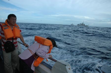 雖然一路上采訪很辛苦,不過,吐了十多次的女記者說:“很值得,也看到日本鴨霸的一面!”還有人說,參加保釣采訪痛苦一天,但若沒參加保釣采訪會遺憾一生,因為一輩子要這樣靠近釣魚島的機(jī)會并不多。