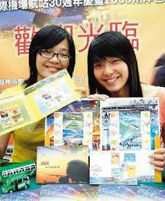桃園郵局為了迎接兩岸包機(jī)直航,加上桃園國(guó)際機(jī)場(chǎng)航空站30周年慶,明天起將推出限量5000套直航個(gè)人化郵票,每套售價(jià)新臺(tái)幣300元,為了配合不同的主題,因此明天所蓋紀(jì)念郵戳為“桃園國(guó)際機(jī)場(chǎng)航空站30周年”,7月4日當(dāng)天所蓋紀(jì)念郵戳則是“2008兩岸周末客運(yùn)包機(jī)首航志慶”。
