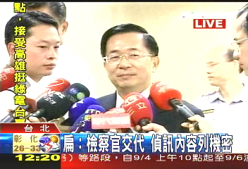 據(jù)臺(tái)灣媒體報(bào)道,陳水扁先于另一名應(yīng)訊的前臺(tái)灣“調(diào)查局長”葉盛茂步出臺(tái)北地檢署。在坐上座車之前,陳水扁向現(xiàn)場(chǎng)媒體表示,檢察官今天特別交代,所有偵訊內(nèi)容都列為機(jī)密,不得對(duì)外公開。