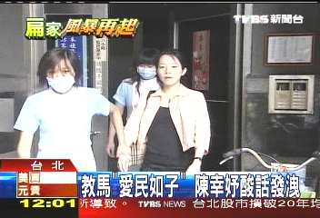 據(jù)臺灣TVBS報道,走出電梯間,面對記者,陳幸妤似乎早就準備好臺詞。她說:“我‘建議’你們用十分之一(人數(shù))的記者就好,去把馬唯中‘圍’回來,這樣子馬英九他就學(xué)會怎么叫‘愛民如子’!