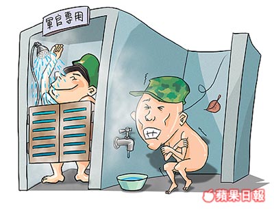 據(jù)臺灣《蘋果日報(bào)》報(bào)道,對此事,聯(lián)勤先以回應(yīng)當(dāng)局的節(jié)能減碳政策來開脫,但在進(jìn)一步被問到為何軍官仍可洗熱水澡后,馬上又改口說,是因?yàn)槭抗俦腻仩t壞了,所以才無法為阿兵哥提供熱水,但聯(lián)勤坦承:“軍官寢室沒有提供給阿兵哥使用,確有缺失!