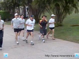 中新網(wǎng)9月12日電 由于馬英九非常喜歡跑步和游泳,臺灣安全部門為此特別要求所有的特勤人員每45天都要接受一次體能測驗,受測人員必須在一天之內同時完成跑步3000米、游泳500米以及伏地挺身仰臥起坐等各種測驗,要是沒有過關,立刻遣回原單位。