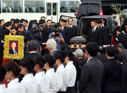據(jù)“中央社”報道,王永慶遺體清晨被送回臺灣后,家屬在長榮倉儲機放倉庫舉行迎靈儀式后,迎靈車隊將遺體送往位于長庚大學活動中心的靈堂內(nèi)安置。