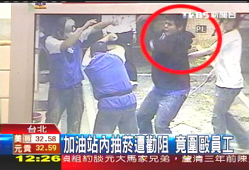 中新網(wǎng)10月20日電 據(jù)臺(tái)灣TVBS報(bào)道,臺(tái)北市文化大學(xué)附近一家加油站,有一群飚車族到加油站加油,其中一名男子抽煙被勸阻,覺(jué)得沒(méi)面子,竟然和同伴圍毆加油站員工,監(jiān)視器也拍下整個(gè)過(guò)程。