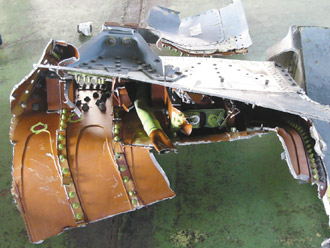 空軍編號(hào)一六一五IDF雙座戰(zhàn)機(jī),前天上午飛到澎湖草嶼石礁靶場(chǎng)炸射時(shí)失聯(lián),兩名飛行員失蹤。軍方昨天撈獲疑似IDF左、右襟副翼及零組件、高壓氣瓶、機(jī)炮自動(dòng)馬達(dá)及發(fā)動(dòng)機(jī)下方掛點(diǎn)等殘骸,不是斷裂就是嚴(yán)重扭曲,未見(jiàn)爆炸痕跡,軍方分析“戰(zhàn)機(jī)撞擊海面造成”。