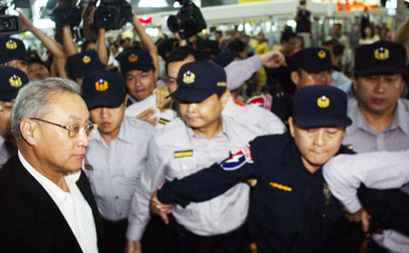 10月22日張銘清離臺(tái)時(shí),臺(tái)灣警方加強(qiáng)了警力保護(hù)。