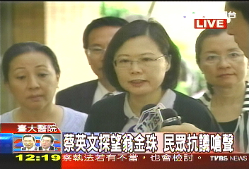 中新網(wǎng)11月7日電 綜合臺灣TVBS電視臺報道,民進(jìn)黨主席蔡英文今天上午到臺大醫(yī)院探視民進(jìn)黨“立委”翁金珠時,遭到民眾抗議嗆聲,抗議民眾大罵蔡英文“無恥”,蔡英文尷尬微笑以對。