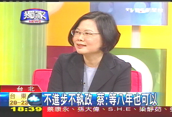 當(dāng)被問到民進黨什么時候可以重新“執(zhí)政”時,蔡英文表示,8年也還可以勉強接受。圖片來源:臺灣TVBS