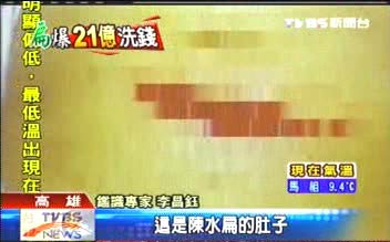 鑒識(shí)專家李昌鈺:“這是陳水扁的肚子,當(dāng)時(shí)我看肚皮的時(shí)候,沒(méi)有知道他貪了那么多錢,陳水扁我見(jiàn)過(guò)幾次面,但是我沒(méi)有想到,就是一個(gè)人貪污了這么多錢財(cái),我心里也是很難過(guò)。”