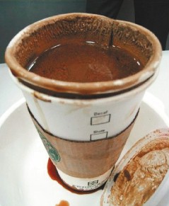 中新網12月11日電 據臺灣《聯合報》報道,有顧客指出在臺灣星巴克購買的咖啡,喝下后感到反胃想吐,咖啡散發(fā)惡臭,杯身還軟化變形,事后星巴克坦承咖啡中含有濃縮清潔劑。該顧客要求求償新臺幣300萬。