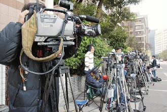 涉及四大弊案獲釋的陳水扁返回居住的寶徠花園廣場,屋外大批媒體守候。(來源:臺灣《聯(lián)合晚報》)