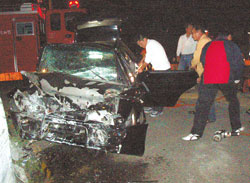 中新網(wǎng)12月15日電 臺(tái)灣七名居民分乘兩輛車(chē),從高雄前往屏東觀看賽車(chē),十四日凌晨回程時(shí),疑因前車(chē)路況不熟加上車(chē)速過(guò)快,失速撞上路邊護(hù)欄,造成兩車(chē)共三死四重傷的慘劇。