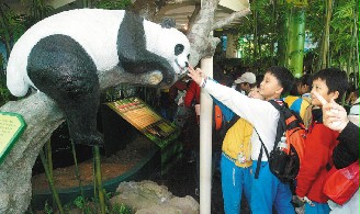 民眾抵達(dá)熊貓館后,依序由室外展示場進(jìn)入。動物園表示,若天氣良好,就可在室外展示場的模擬棲地風(fēng)景的攀爬架、樹洞、平臺上看見團(tuán)團(tuán)、圓圓的身影。進(jìn)入熊貓館后,民眾先觀看各種大熊貓的保育資料,接著便進(jìn)入室內(nèi)展示區(qū),隔著4公分厚,經(jīng)防霧處理的玻璃與大熊貓對望。區(qū)內(nèi)也設(shè)有大型的樹干,供大熊貓休憩、攀爬。小朋友們參觀展示區(qū)內(nèi)的大熊貓模型,已讓參觀小朋友非常興奮,直喊“要是真的多好。”