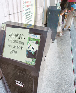 郝龍斌表示,為避免民眾到了動物園才發(fā)現(xiàn)已無看熊貓的名額,市府網(wǎng)站、各大捷運站及公共場所跑馬燈系統(tǒng)都會實時顯示熊貓館入館人數(shù)或剩余名額,臺北市民也可透過熱線詢問號碼牌余額,讓民眾自行評估要不要前往動物園或購票入園。
