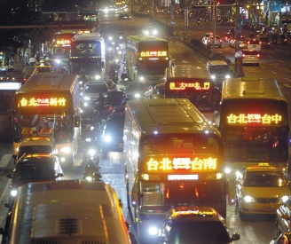 中新網(wǎng)1月24日電 據(jù)臺灣《聯(lián)合報》報道,春節(jié)假期將屆,臺北市主要干道紛紛涌現(xiàn)大批返鄉(xiāng)車潮,尤其是臺北車站、客運總站、年貨大街周邊區(qū)域車流多又慢,幾乎已成大型汽車停車場。