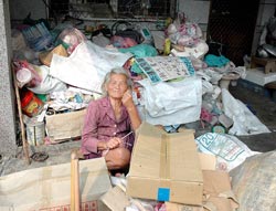 中新網(wǎng)3月19日電 據(jù)臺(tái)灣《中國(guó)時(shí)報(bào)》報(bào)道,屏東潮州一位八十歲老婦人,四年前丈夫罹病過(guò)世,她搬到小兒子家同住,但怕狗的她卻以屋內(nèi)有狗為由,堅(jiān)持不進(jìn)家門(mén),自己則利用紙箱、尼龍袋就在門(mén)前騎樓隔了一個(gè)小空間當(dāng)作棲身處,不管天冷、天熱始終不離開(kāi),鄰居路過(guò)時(shí)都不禁投以好奇的眼光。