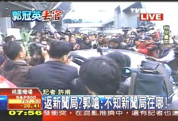發(fā)表“辱臺”爭議言論的臺當局前“新聞局”派駐加拿大多倫多官員郭冠英,31日上午6時多抵達桃園機場,出關(guān)時有二三十名黑衣男子包圍他要護送他離開,但也有綠營在現(xiàn)場嗆聲,要求道歉。