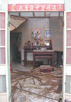 篤信佛教的她說,趕緊回屋,發(fā)現(xiàn)三十坪大的屋內滿目瘡痍,電視、冰箱全倒,杯碗散落一地,亂成一團;“還好客廳供奉的佛祖神像沒有受損”,仍安穩(wěn)坐在供桌上!澳芴舆^一劫,真是神明有保佑!”