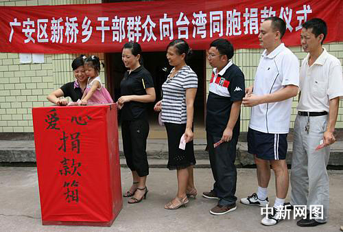 獲悉寶島臺(tái)灣遭遇“莫拉克”臺(tái)風(fēng)的強(qiáng)烈襲擊造成重大人員傷亡及財(cái)產(chǎn)損失的消息后,曾遭受“5.12”地震災(zāi)害的廣安區(qū)百萬人民感同身受,積極響應(yīng)區(qū)“紅十字會(huì)”的募捐倡議,踴躍捐款,以幫助臺(tái)灣同胞盡快走出困境,重建家園。在新橋鄉(xiāng),干部群眾踴躍捐款,當(dāng)日現(xiàn)場(chǎng)捐款3850元,目前募捐還在繼續(xù)。據(jù)了解,去年該鄉(xiāng)群眾為“5.12”汶川大地震捐款達(dá)7萬多元。(完)