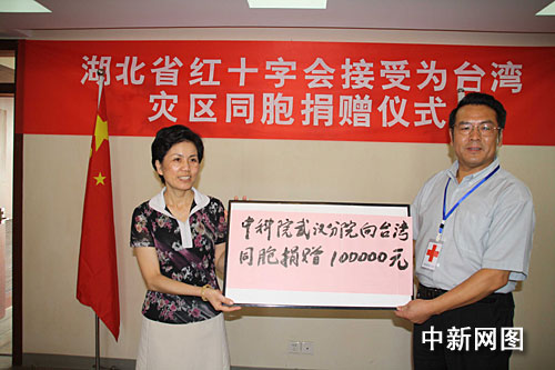 除上述100萬元人民幣的捐款外,連日來,已陸續(xù)有武漢市民在湖北省紅十字會(huì)登記捐贈(zèng)。8月19日下午,湖北省紅十字會(huì)機(jī)關(guān)也開展了募捐活動(dòng),湖北省紅十字會(huì)專職副會(huì)長毛三元帶頭捐款500元人民幣。中國科學(xué)院武漢分院黨組書記、常務(wù)副院長陳平平專程趕到湖北省紅十字會(huì),代表該院向臺灣同胞捐贈(zèng)10萬元人民幣。