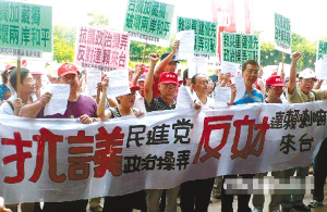 抗議團(tuán)體民進(jìn)黨總部“踢館”