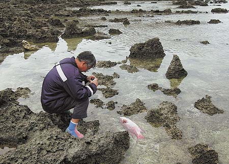 臺(tái)灣綠島暴斃的魚群原本只出現(xiàn)在燈塔到公館沿岸,六日連柚子湖一帶也出現(xiàn),到底是毒物擴(kuò)散還是單純地被沖刷到此,引來當(dāng)?shù)鼐用窀叨汝P(guān)切,拍照存證。臺(tái)灣《中國時(shí)報(bào)》圖