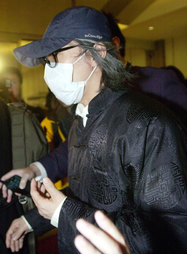 香港藝人周星馳一月二十九日搭機來臺宣傳新作,他以神秘裝扮出現(xiàn)。( “中央社”圖;劉得倉攝)