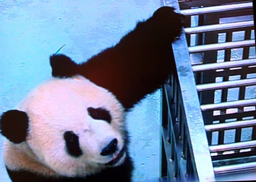 圖:大熊貓抵達臺北市動物園開始第一次進食