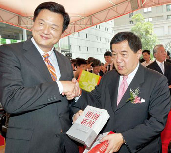 臺(tái)遠(yuǎn)東集團(tuán)26日舉行“遠(yuǎn)東百貨板橋購(gòu)物中心二期工程”開工典禮,由集團(tuán)董事長(zhǎng)徐旭東(右)邀請(qǐng)臺(tái)北縣長(zhǎng)周錫瑋(左)等來(lái)賓,共同上香祈福工程順利建造完工,并贈(zèng)遠(yuǎn)東60周年開創(chuàng)新猷白皮書。 圖片來(lái)源:臺(tái)灣《工商時(shí)報(bào)》
