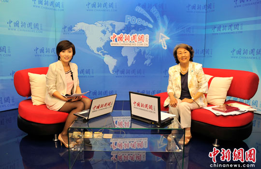 周恩來總理侄女、原中國新聞社副社長周秉德(圖右)6月3日下午做客中新網(wǎng)。中新網(wǎng)記者 金碩 攝