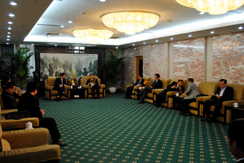 李亞飛對蔡錦隆的到訪表示歡迎,并向參訪團(tuán)一行介紹了海協(xié)會(huì)工作職責(zé)和兩會(huì)四次會(huì)談及簽署12項(xiàng)協(xié)議的情況。