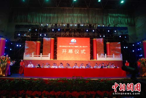 中新網(wǎng)石獅6月17日電(林永傳 郭斌)16日是中國傳統(tǒng)端午佳節(jié),也是閩南所稱的“五月節(jié)”。當(dāng)晚,第四屆閩臺(tái)對(duì)渡文化節(jié)暨蚶江海上潑水節(jié)開幕式在福建石獅市體育館舉行。