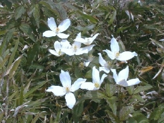 合歡山區(qū)最搶眼的花卉,非玉山山蓼莫屬,又稱“高山威靈仙”、“繡球藤”,四片白色花瓣要不注意到它都很難。玉山山蓼為多年生蔓性木質藤本植物,喜愛陽光,5-6月間白色花簇生于葉腋,花朵大而顯眼,常見于路旁灌叢。