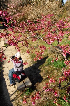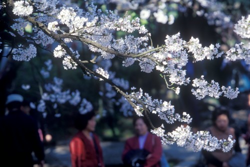 久聞阿里山是全臺灣櫻花最美的地方,光是從日本傳來的染井吉野櫻就多達1900多株,像是阿里山派出所、阿里山賓館、沼平車站及沿線、貴賓館、木蘭園、林務(wù)局招待館、三代木等處,都可以欣賞染井吉野櫻花海如雪的蹤影,三月中開始綻放、三月底進入盛開期的染井吉野櫻,可說是阿里山櫻花季最美麗的主角。高山地區(qū)濕冷多霧,使花瓣呈淡雪色、花心粉紅的染井吉野櫻看起來像是一層層暈染在山頭的雪白云海,當(dāng)山間微風(fēng)掠過,迎面撲來如雪花般輕柔的櫻花雨,弱不禁風(fēng)的姿態(tài)讓人覺得凄美的悵然。但若是天氣晴朗的午后,黃昏前夕陽的光暈照射在櫻花上,平?雌饋泶嗳跄郯椎幕ò赆莘鹞×岁柟饩A,變成極為嬌艷的粉紅色,完全是截然不同兩種花顏,令人驚詫。