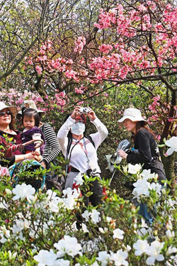 中新網(wǎng)4月6日電 據(jù)臺(tái)灣“中廣新聞網(wǎng)”報(bào)道,現(xiàn)在是陽明山花季,每逢假日都會(huì)有許多游客上山賞花,但是很少人知道,位在陽明山山腳下,圓山忠烈祠旁邊的海軍司令部在具有園藝專長(zhǎng)的士兵照料下,現(xiàn)在開滿了杜鵑花,給嚴(yán)肅的營(yíng)區(qū)帶來不少輕松氣氛。